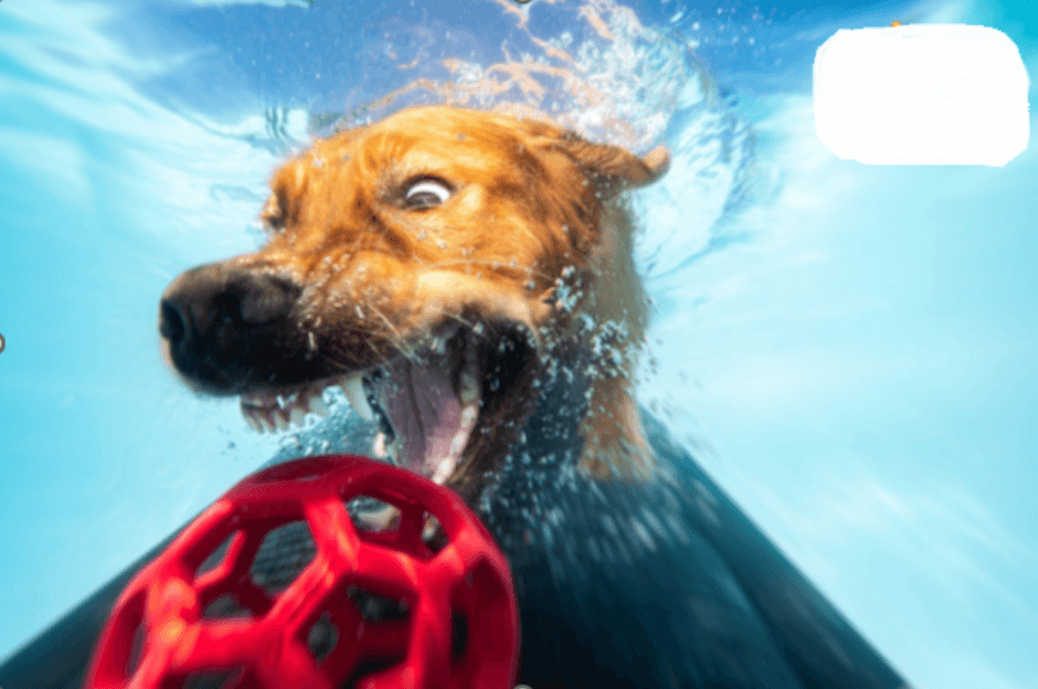Eine Fotografin, die u.a. Unterwasserfotos von Hunden anbietet, hatte die links abgebildete Aufnahme geschossen und im Anschluss nachbearbeitet. Ein früherer Kooperationspartner der Fotografin lud das Foto in eine KI Software hoch und ließ von der KI das rechts abgebildete Bild erzeugen.